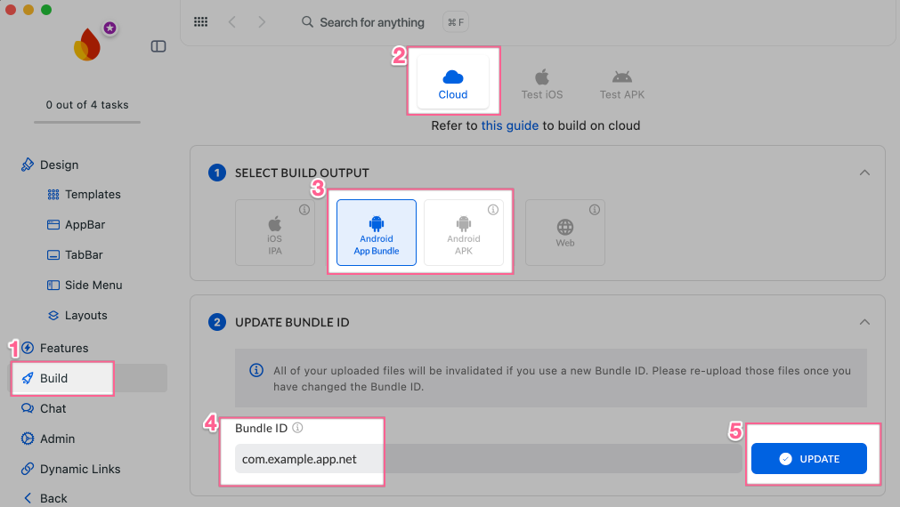 Bundle IDand clickUPDATE. Your Bundle ID must not include reserved keywords.