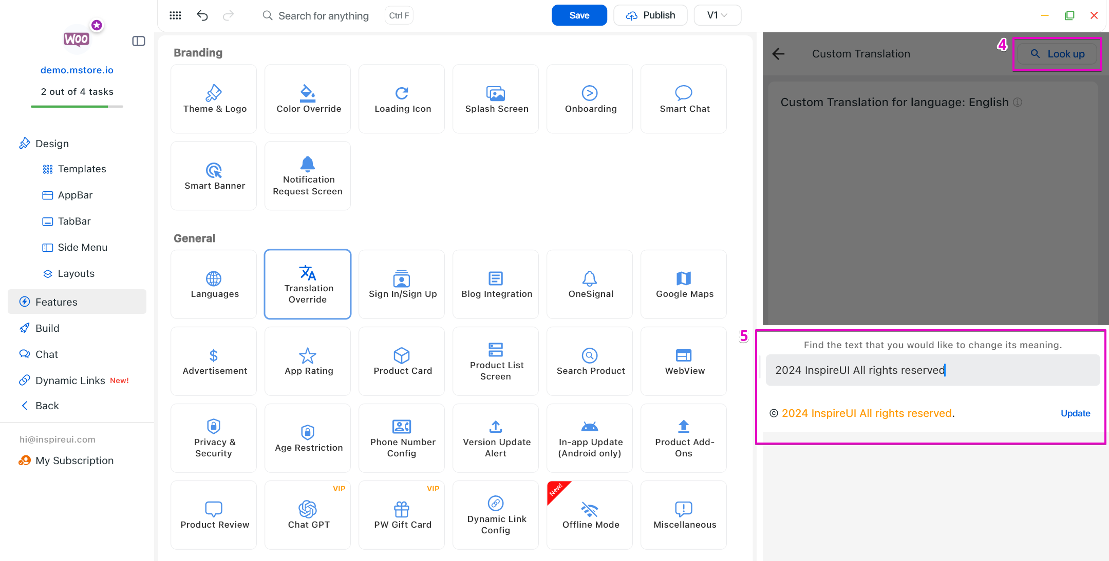 Click Look up button and search for “2024 InspireUI All rights reserved.”.