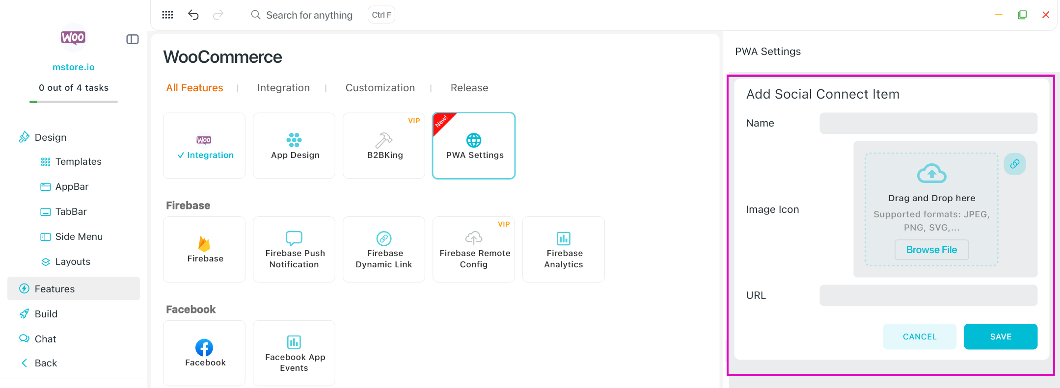 - In General, scroll down and select Web App (If you have no web app, click on Add app button to create a new one).