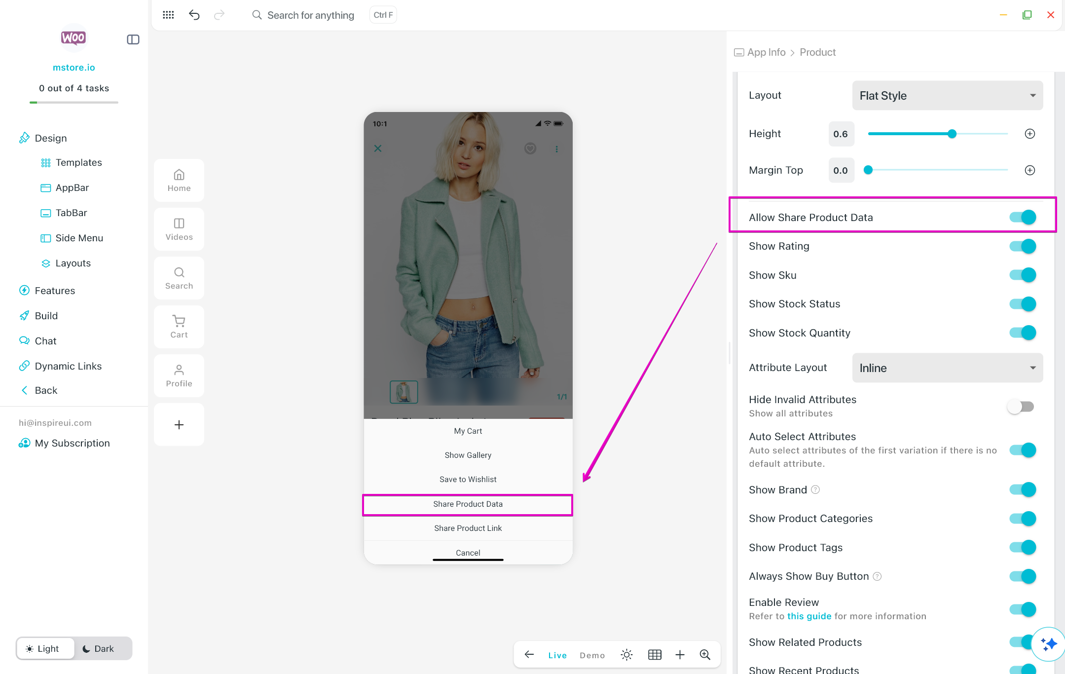 Manage to show Share Product Data option on Product Details page. Support user share productβs image and description.