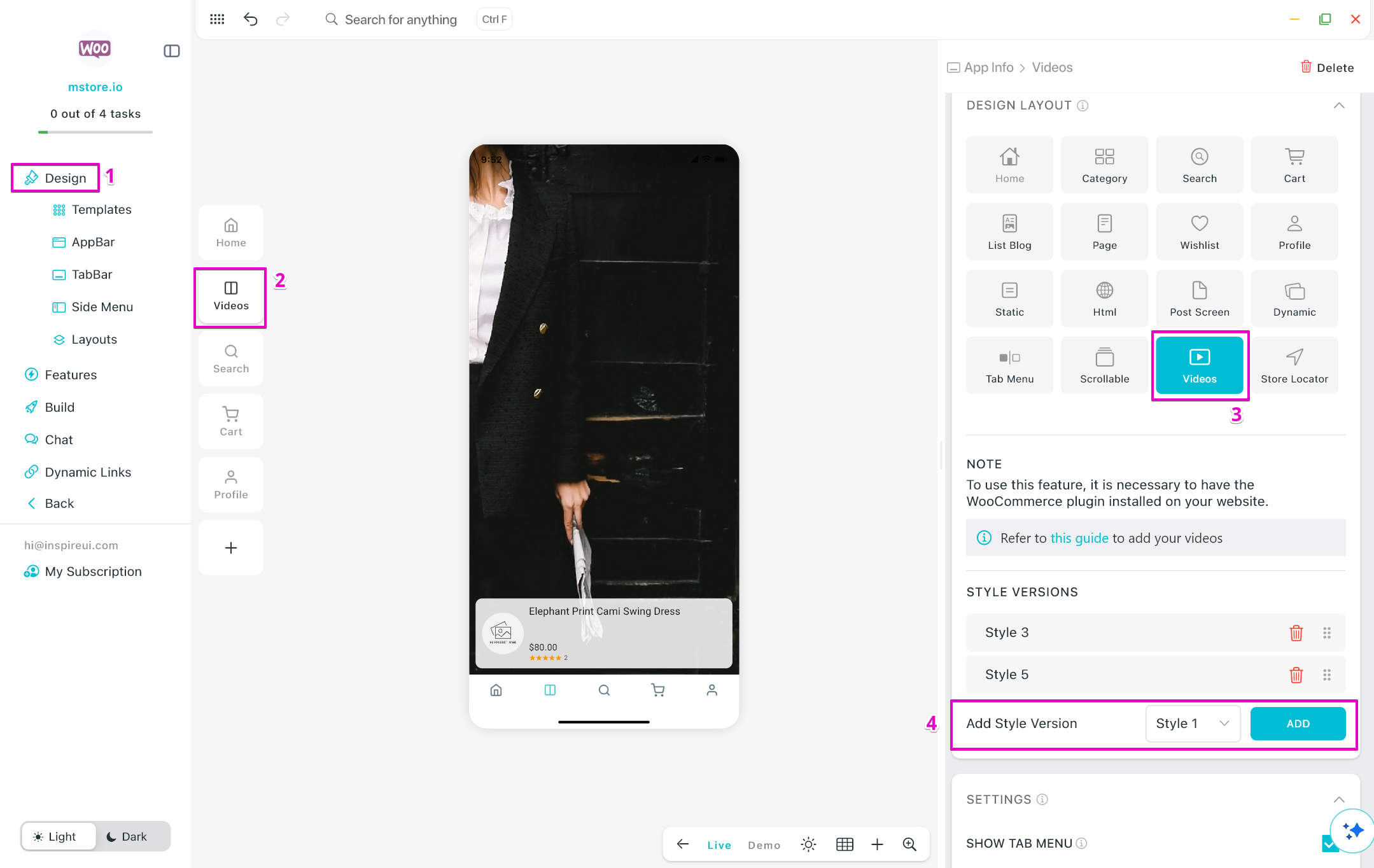 - To enable Shopping Video widget on your app, please refer to our video guide.