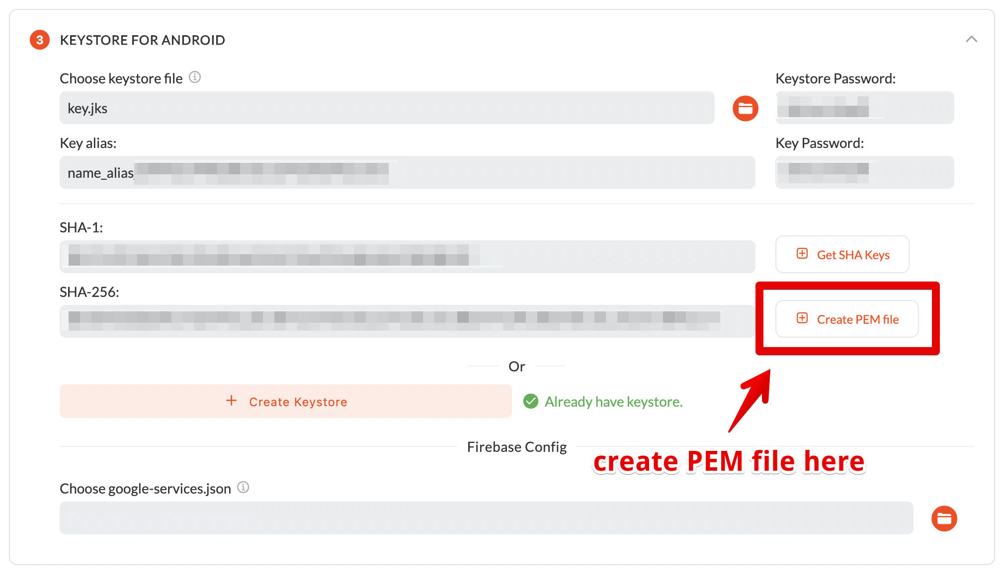 - If you lost the old key, or have created a new keystore, simply generate the PEM file from your keystore file manually or using App Builder and then download it from your email: