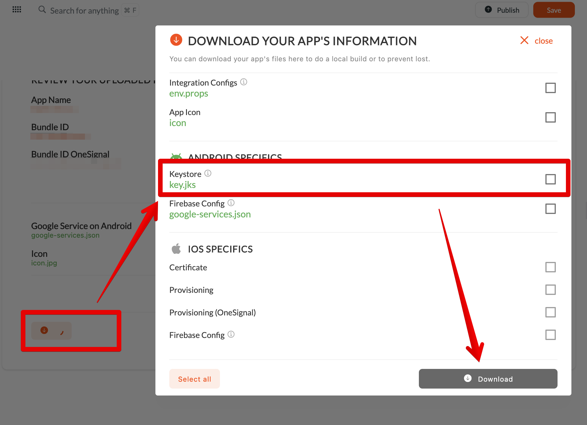 That’s all. You have created the Key store file successfully. Then, expand step 4 BUILD ON CLOUD → scroll down → click the Download button → select the Keystore to download, and save all passwords to use it later.