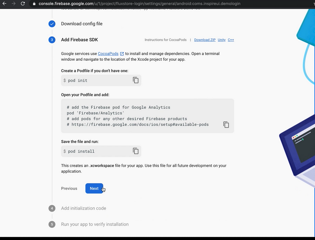 Precondition: Follow Firebase Settings to create application on Firebase.