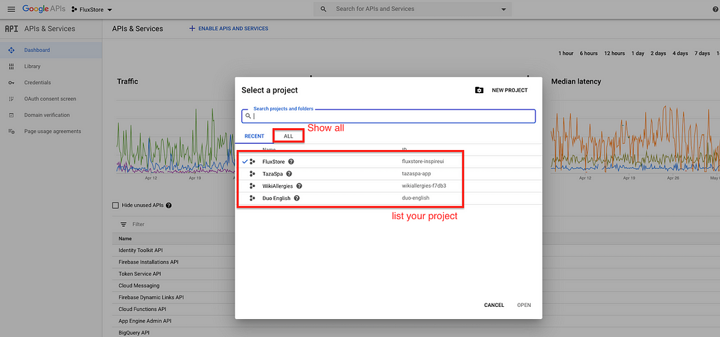 • Select the project you want to setup. If you cannot find them in the RECENT project list, please click ALL to display them all and select the project.