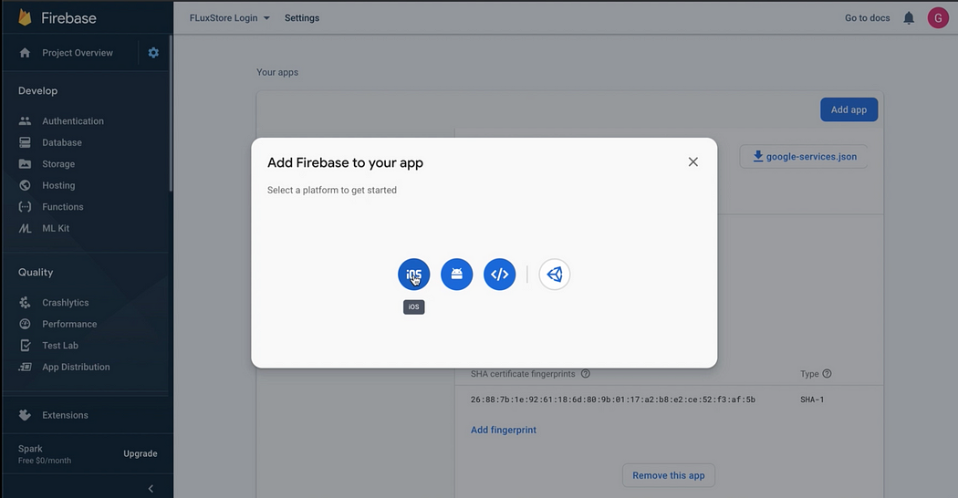 In case you meet this issue: After creating APK and releasing the app in **App Stores**, you may get an error when logging in with **SMS Login**. You need to go to the **App stores** and copy the **SHA-1 key** and past to your **Firebase** setting: