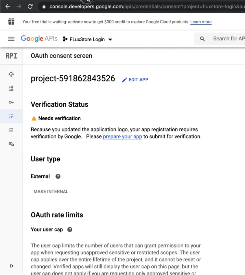 To set up a login with Google. First, you need to set up the Oauth consent Screen for your Firebase application.