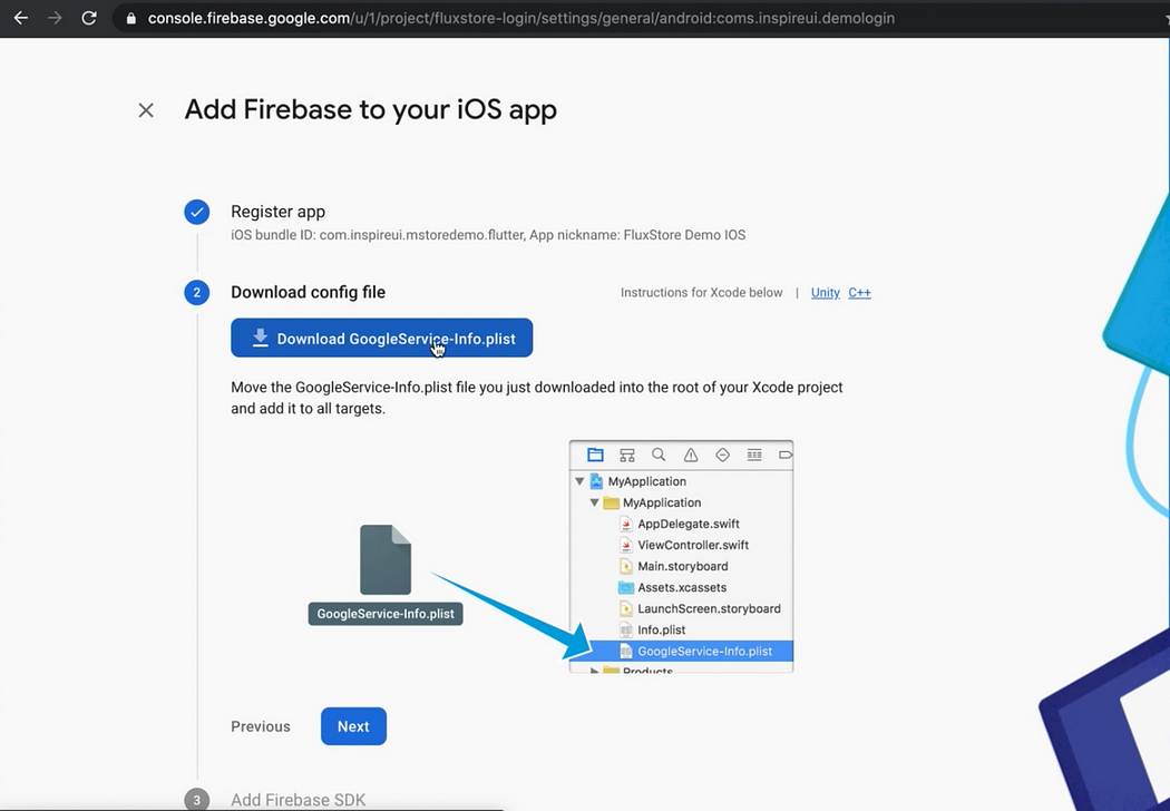 • In this step, the Bundle ID of the IOS application is required. (Refer to [Problem Internal Link] to get the Bundle ID)