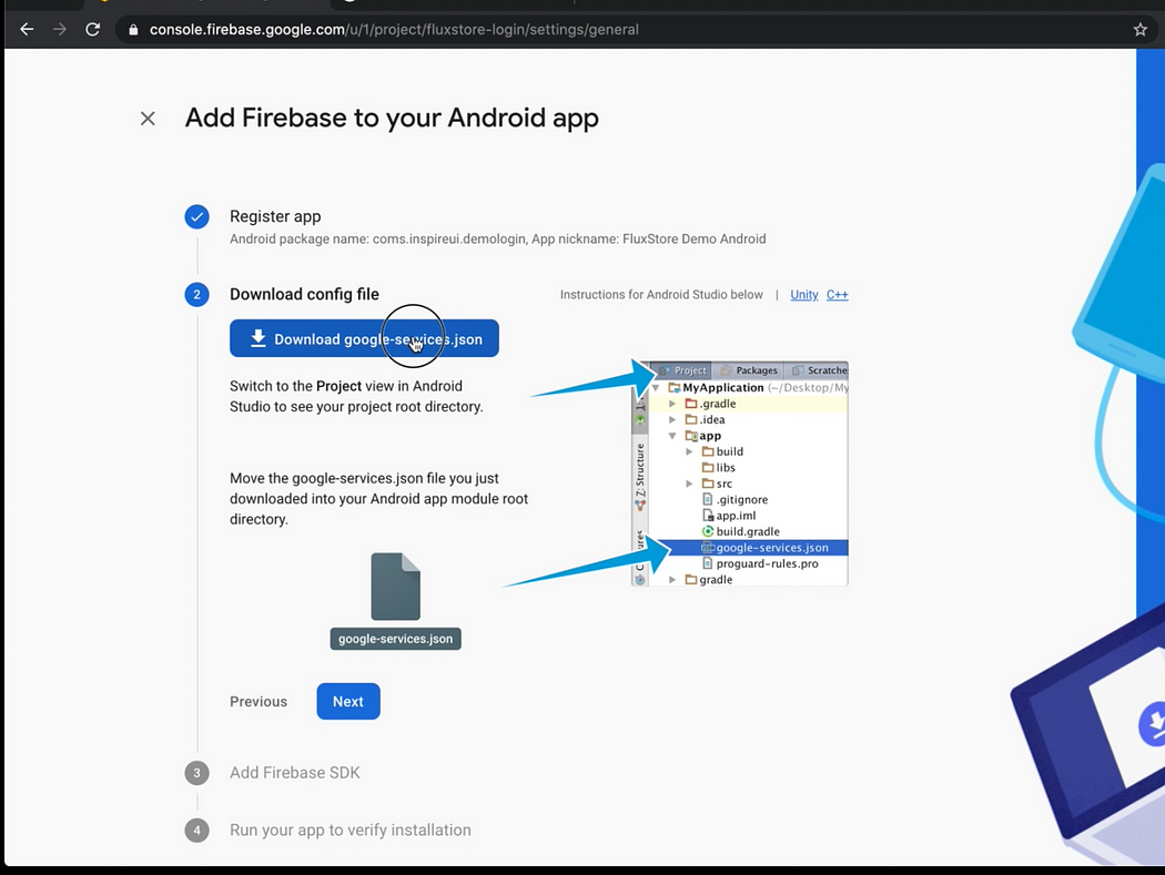 Step 1: Open Project Settings in your project firebase, add new app android: