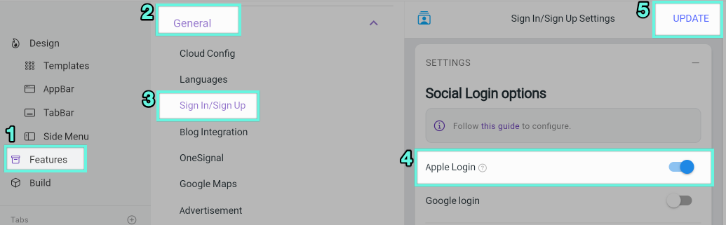 2. Enable the Apple Login option on Firebase https://tppr.me/yd1Yv - this option is used to register user's Apple account with the Firebase app.