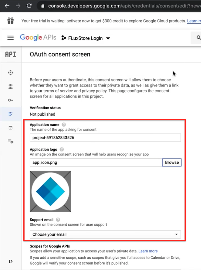 Step 5: Fill in some necessary information on the OAuth consent screen: