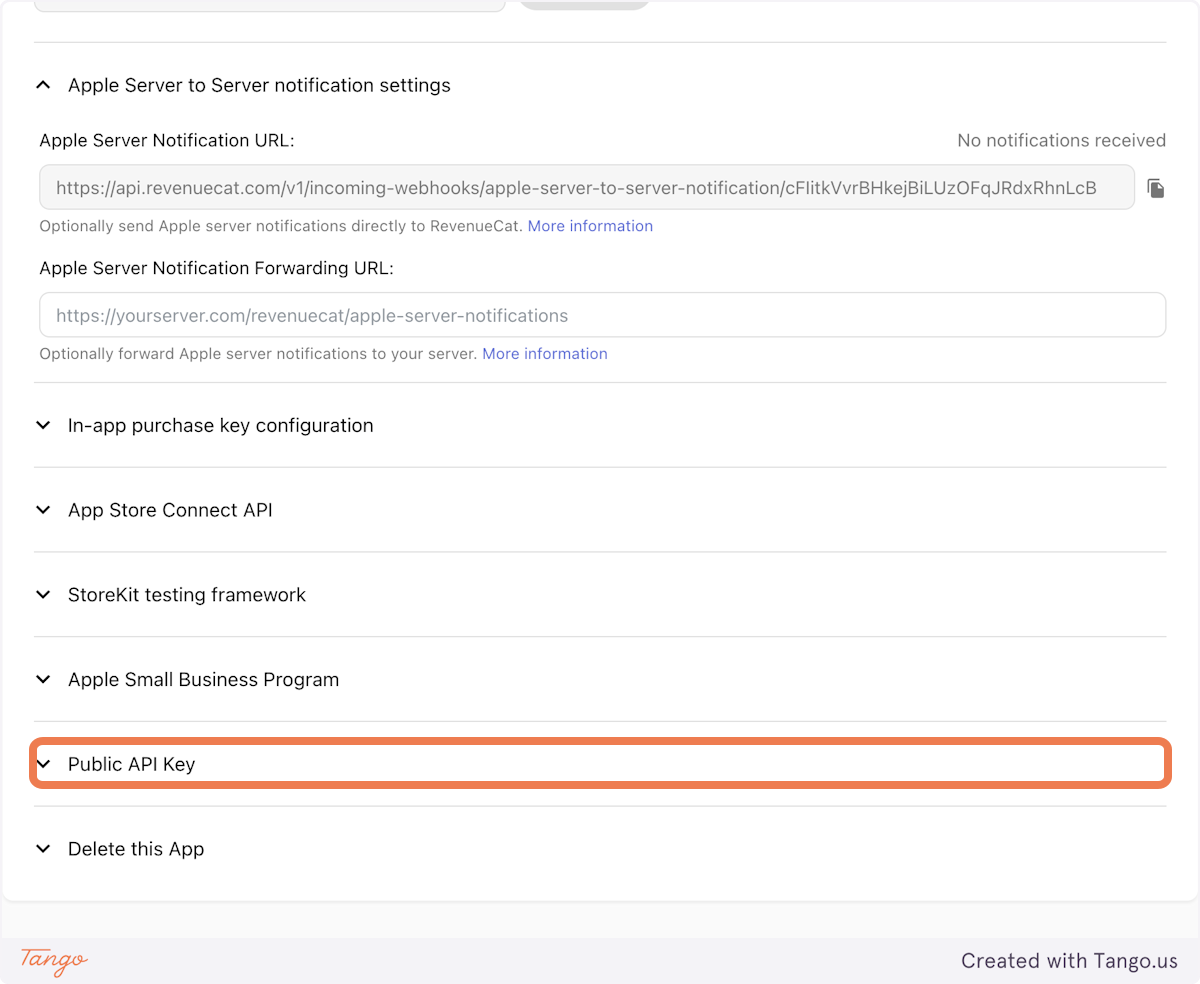 - Input the API Key from iOS or Android Project into the Revenue Google API Key and RevenueCat: Apple API Key