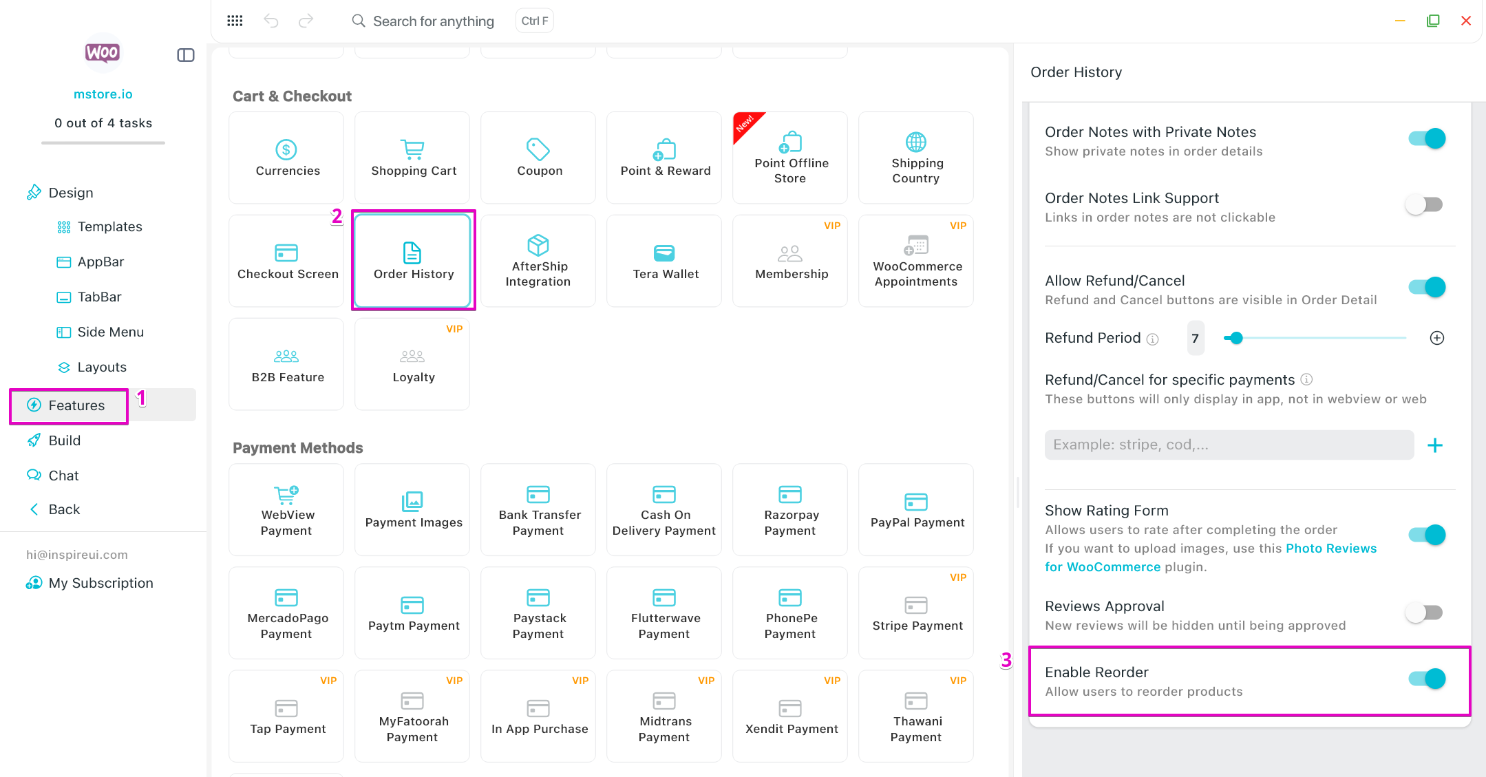 To allow users to cancel or return the product, you enable the Refund/Cancel feature. Specifically, the Refund button will be hidden once the refund period expires.