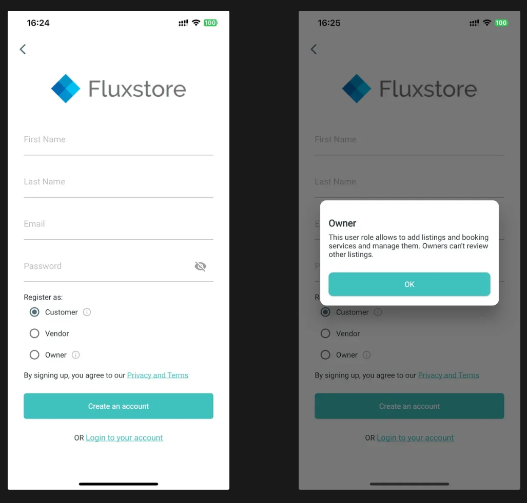 This update introduces support for owner role registration within the Listing app. Users can now register as business owners directly from the app interface.
