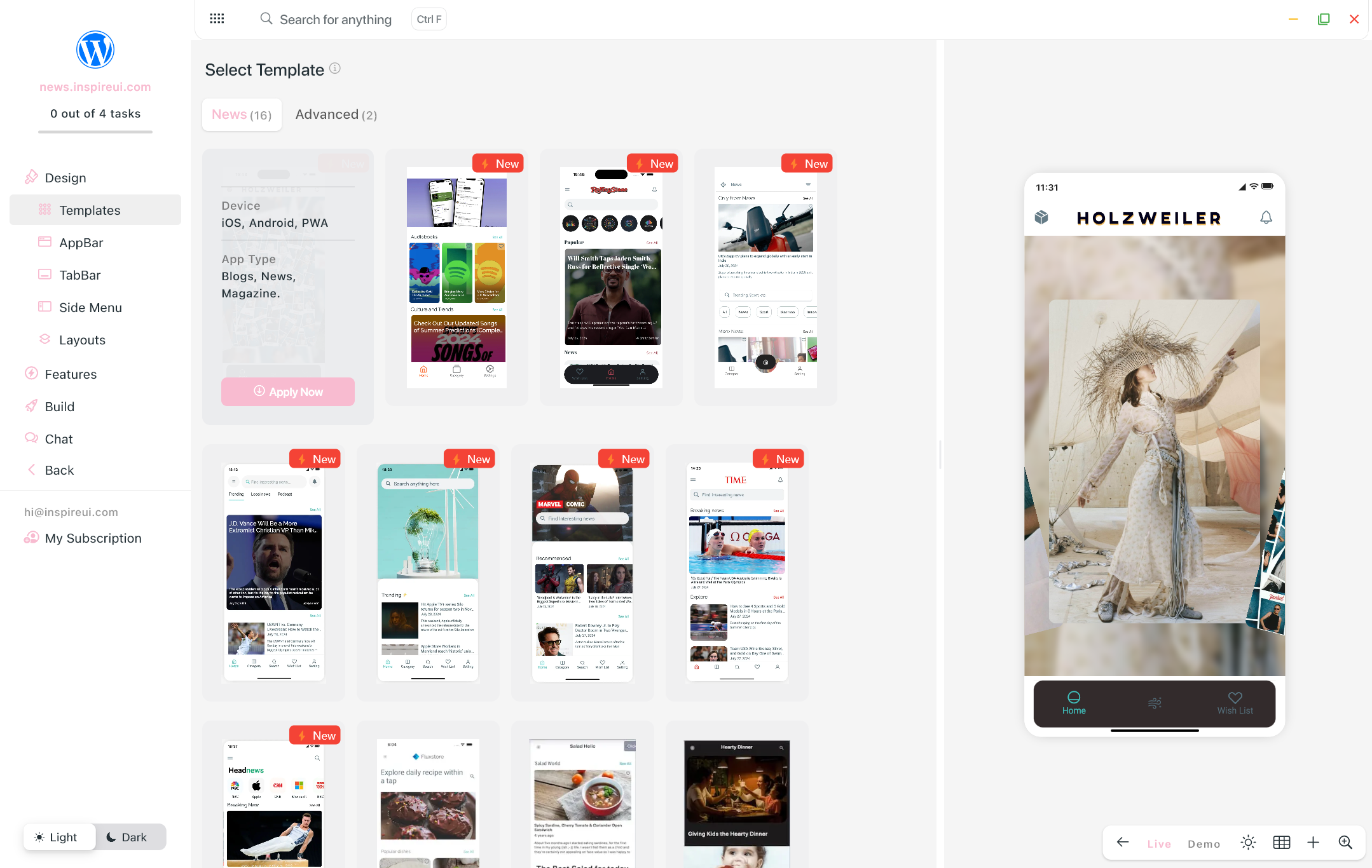 We have added more templates for News/Blog apps, giving you more options to choose from to quickly design your app. The new templates come with sleek designs and enhanced functionality to help you create engaging content.